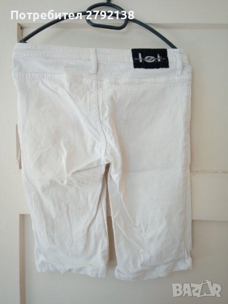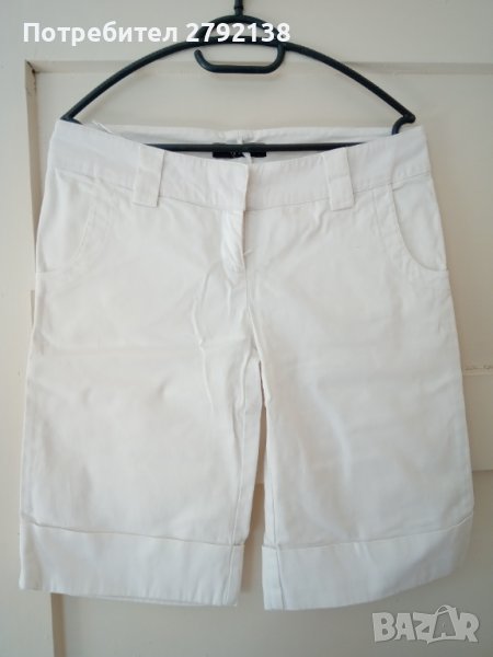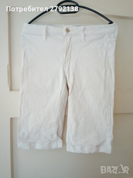 Бели дънки над коляното размер 28, цена 5 лв. Бели панталони с подгъв над коляното размер 36/38 (s/m) цена 5 лв. Ризки Cropp S размер, цена за брой 7 лв, Блуза с шлейф от черен тюл S размер, цена 12 лв. Дрехите са много запазени без забележки.