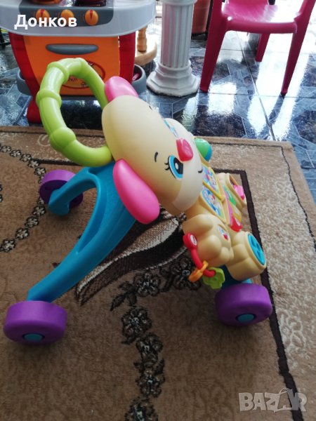 Хайде да се разходим! Кученцето е идеалният приятел за вашето растящо бебе, предлагащ вълнуващи практически занимания за малките подрастващи, както и много насърчителни фрази в подкрепа на тези първи малки стъпки. Докато малките растат, Кученцето ще ги запознае с азбуката, формите, цветовете, броенето и дори истинските думи! Малките мускули получават една добра тренировка, докато седящите малчугани посягат и извършват различни движения, а след това се изправят, за да застанат и вървят зад проходилката. Докато бебетата откриват как да активират музиката и фразите чрез натискане на бутоните или натискане на проходилката, те виждат, че техните действия могат да направят забавни неща - хей, това е причина и следствие! 2 начина да игра, докато бебето расте: игра в седнало положение или изправете се и ходете! 75+ песни, звуци и фрази представят азбуката, формите, цветовете, цифрите и още. Промени в учебното съдържание с възрастта и възможностите на бебето с технологията Smart Stages ™. Дръжката за лесно хващане помага за стабилните първи стъпки на бебето.От 6 до 36 месеца.