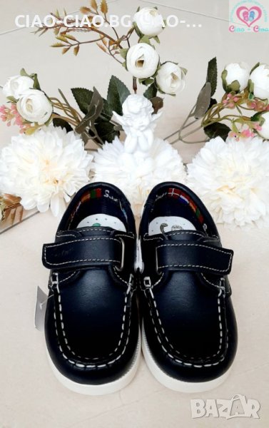 №21-№27, Бебешки мокасини за момче, тъмно сини с бял кант и велкро
