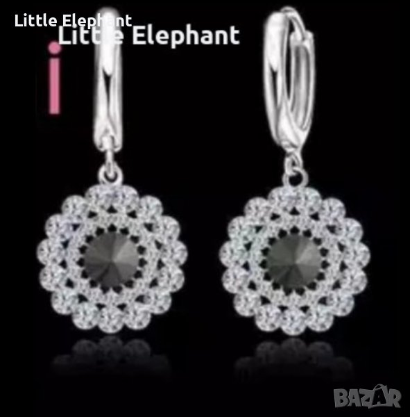 Сребърни висящи обеци,колекция"Flowers",black cristal/нови → Обява 37922996