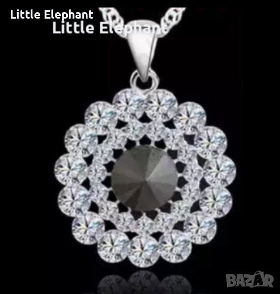 Сребърно колие с ланче,колекция"Flowers",black cristal/нови → Обява 37923017
