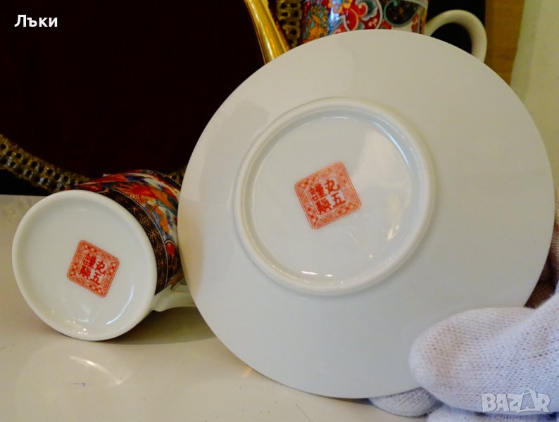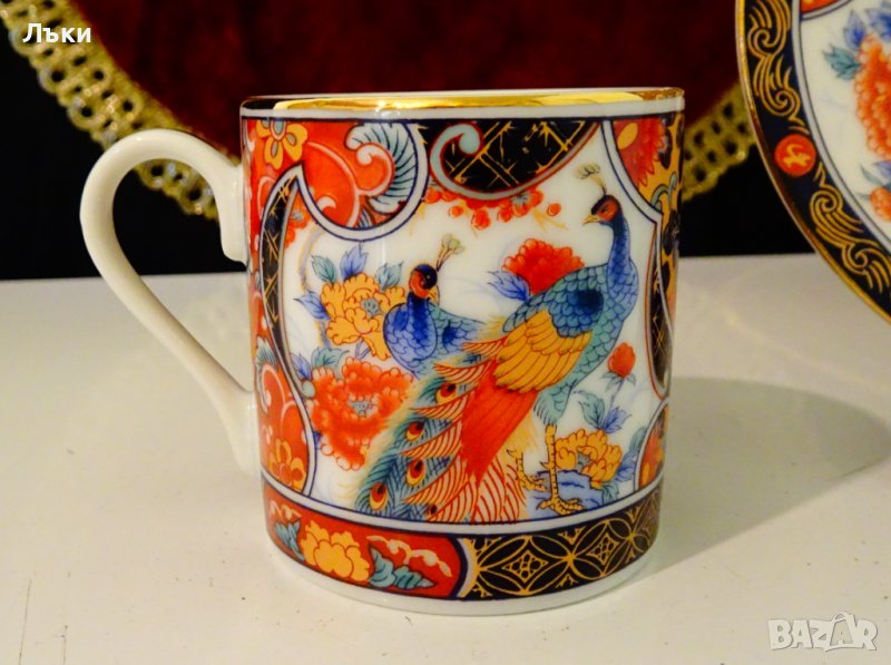 Старинна чаша с подложна чиния японски порцелан Eiwa Kinsei,маркирани.Ръчно декорирани в стил Imari с