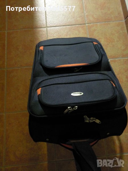 Куфарът е много добър за багажа. Цвятът е тъмно син. Състоянието е много добро. Има увеличението на ширината +5 см. Забележка: няма телескопичната дръжка и наоколо пластикът е малко изчупен. Другого са наред: колелата, циповете, горната и страничната дръжки. Чист е, готов е за употреба. Вижте снимките.