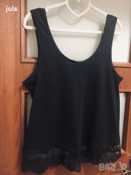 Размерът му е М, нототговаря на L - XL, тъй като е овърсайз модел и стои по- широко. Дължина до кръста.