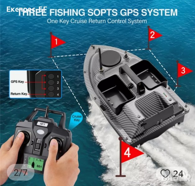 Карбонова лодка с 16 точков GPS Bait Boat за захранка