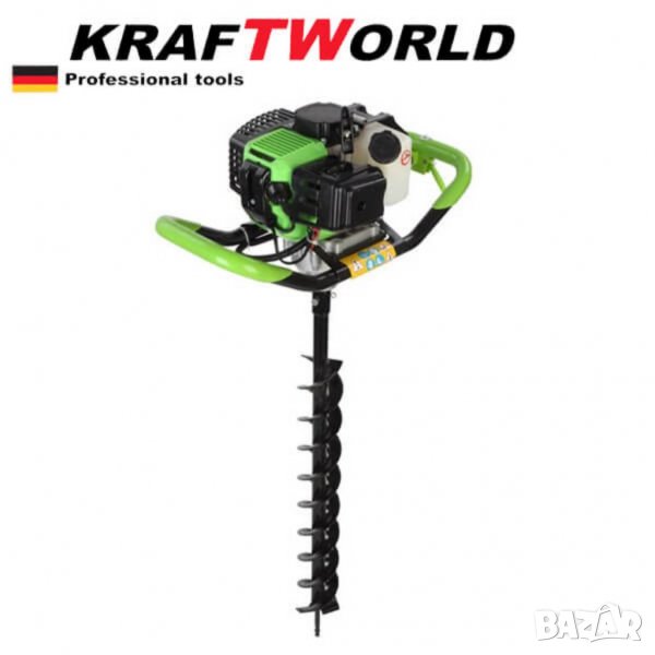Немски Бензинов Свредел 68 кубика с гумирани дръжки + 200мм Бургия и 100мм 120мм 150мм 200мм 250мм
