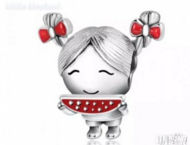 Сребърен висящ елемент Пандора,колекция"Family"-girl with watermelon"/нов → Обява 37955121