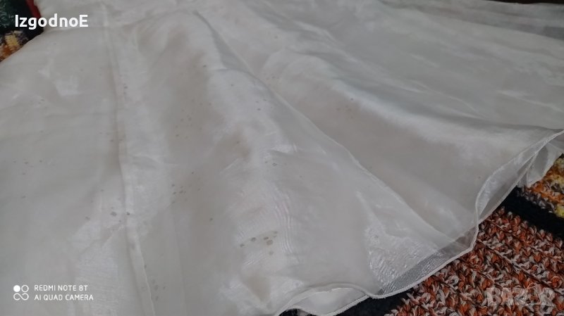 Разкошна шаферска рокля. Дъщеря ми беше снежната кралица на един маслен бал с нея, това и е обличането. Няма следи от употреба. Отгоре има брокат, опитах се да снимам. На 4пласта е, което придава хубав обем. Роклята е дълга и би могла да се носи и от по-голямо детез ако е слабо