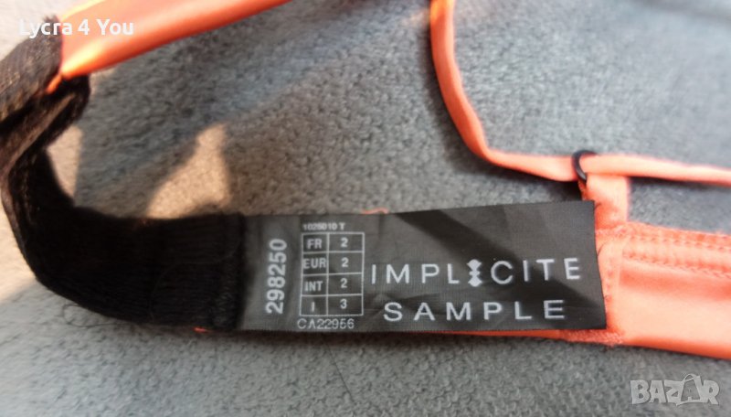 На гърба закопчаването е едноредово, презрамките се регулират стандартно. Размерът на етикета е EUR 2, което предвид мерките на манекена, на който е снимано е S/M или за сутиен 75/80 чашка В.