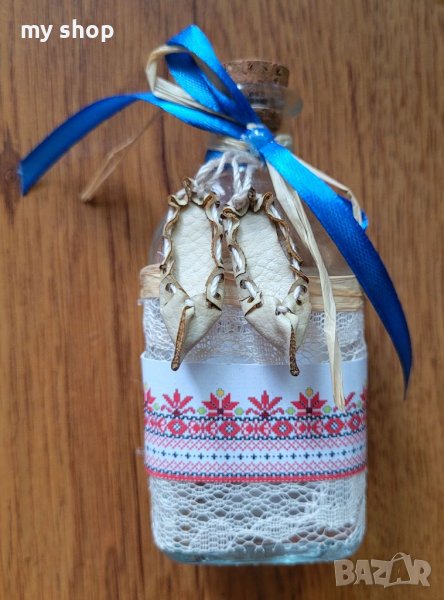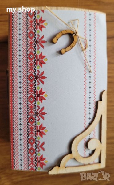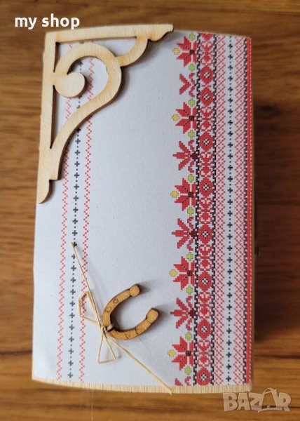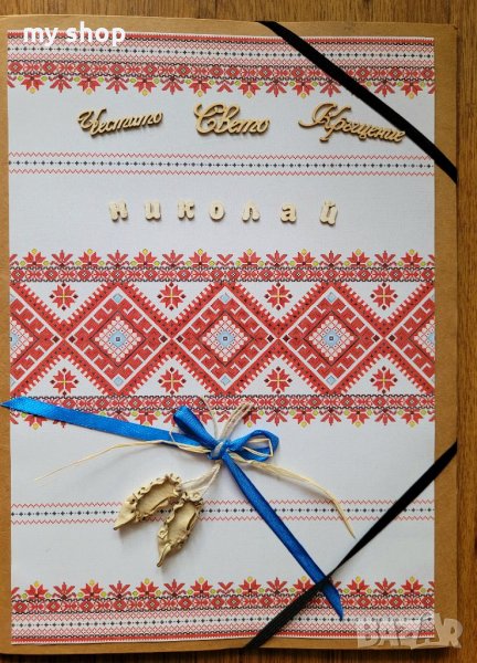 Продавам нов ръчно изработен комплект за кръщене.Комплектът е индивидуален,с името-Николай.Направен от естествени и български мотиви.