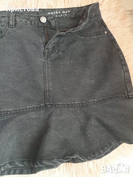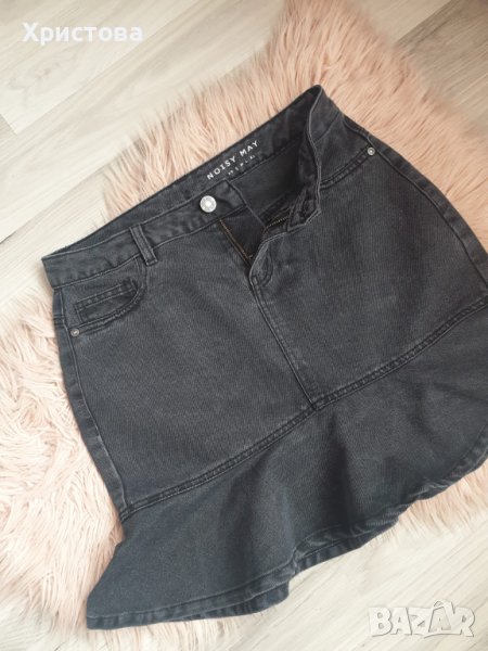 Кокетна дънкова поличка в черно с висока талия и волан в долната част. Размер 36,С . Символични цени на всички дрешки в профила ми. Опция тест и преглед. Доставка с отстъпка до офис ЕКОНТ.0899243418