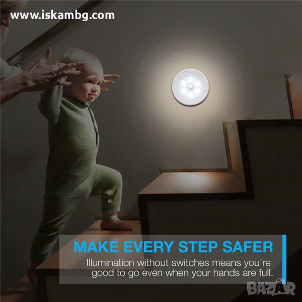 Безжични LED лампи с безжичен сензор за движение и сензор за светлина работещи с батерии, за съблекалня, кухненски шкаф, баня, антре, стълби и други