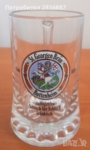 2. 2 броя чаши са St. Georgen Brau Buttenheim Seit 1624. Това е втора употреба. В отлично състояние е. Тази чаша е висока 12,5 см и няма драскотини, пукнатини или чипове.