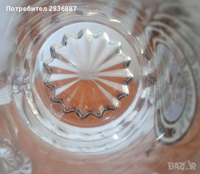 Чашата е произведена във Франция според гравюрата върху основата. Чашата е висока 13 см и ръбът е с диаметър 6,5 см. Няма чипове или пукнатини.