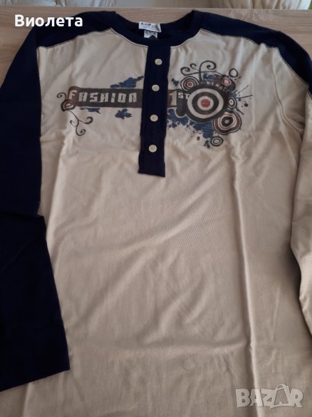 тениска/бежово и тъмно синьо/ - широчина в раменете - 48см, дължина - 73см