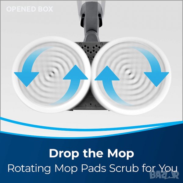 - Мощни въртящи се моп подложки. Възстановете естествения блясък на вашия под с въртящи се подложки за моп, които вършат работата вместо вас.