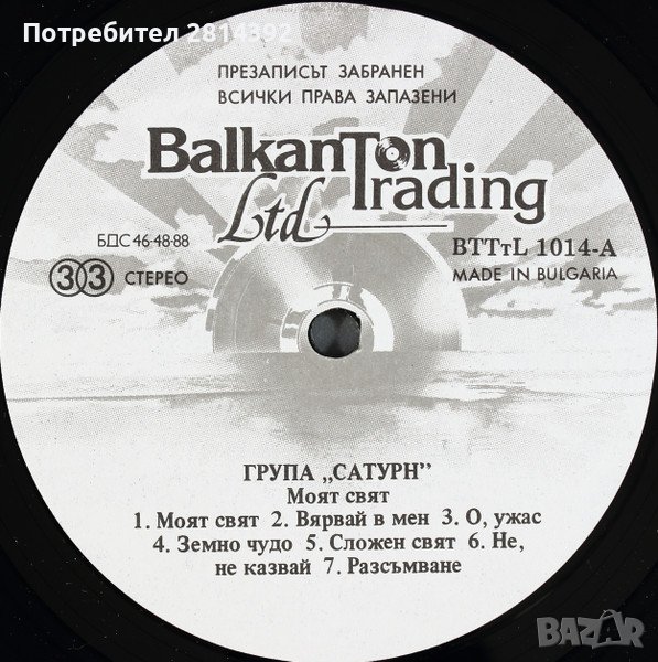Рядка Грамофонна плоча на Васко Кръпката (от Подуене блус бенд) с БГ блус-рок групата САТУРН SATURN