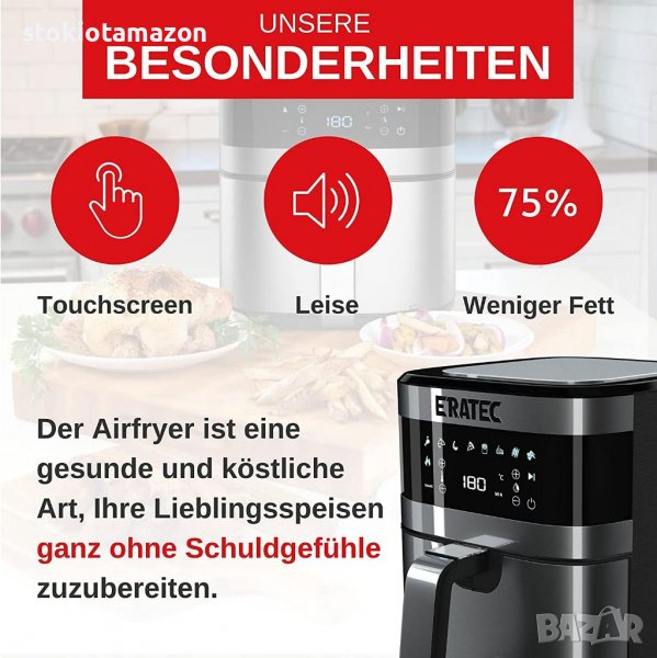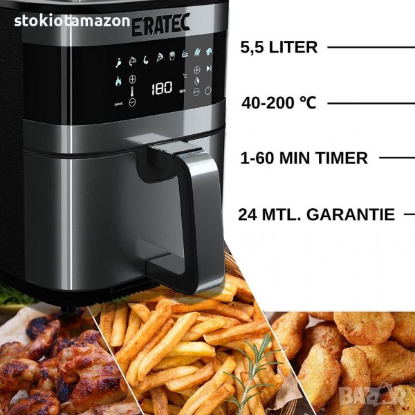 ERA-TEC AF-66 Airfryer XXL, фритюрник с горещ въздух без олио, капацитет 5.5 L, 1500W, цифров диспле