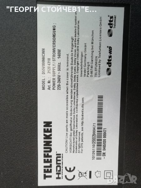 TELEFUNKEN D55V800M4CWH СЪС СЧУПЕН ДИСПЛЕЙ → Обява 37969643