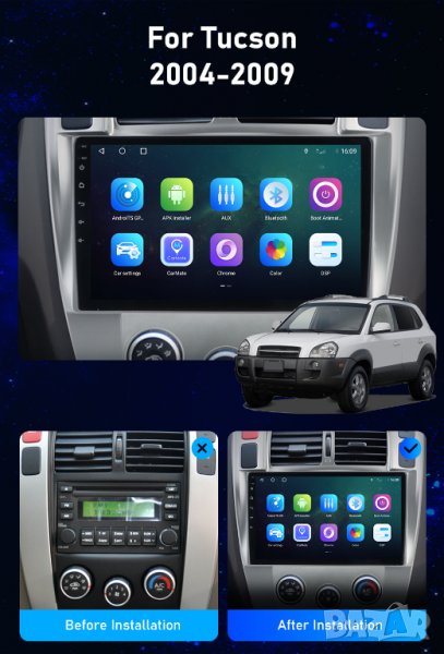 Мултимедия, Двоен дин, за Hyundai Tucson, Навигация, автомобил, плеър, Android, Хюндай Туксон