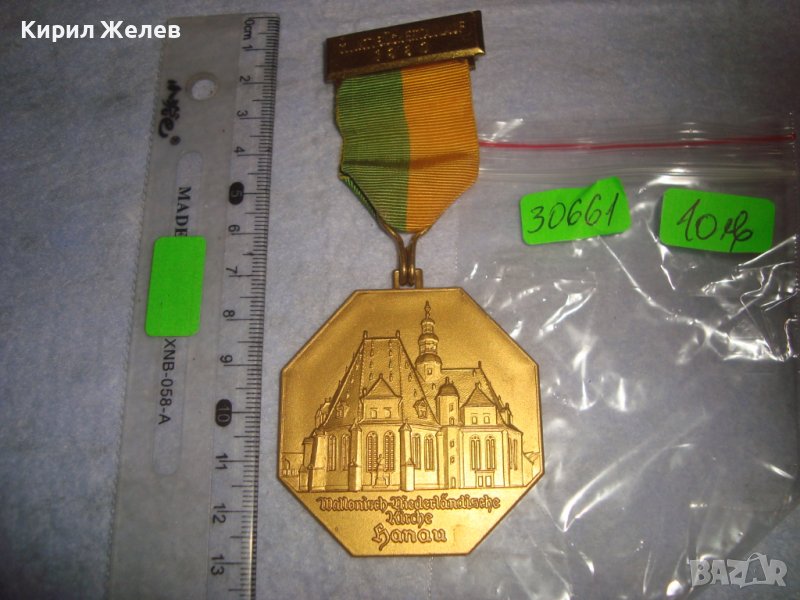 1980г. ПОЗЛАТЕН РЯДЪК КОЛЕКЦИОНЕРСКИ БРОНЗОВ НЕМСКИ МЕДАЛ ХАНАУ с ЛЕНТА и НОСАЧ 30661