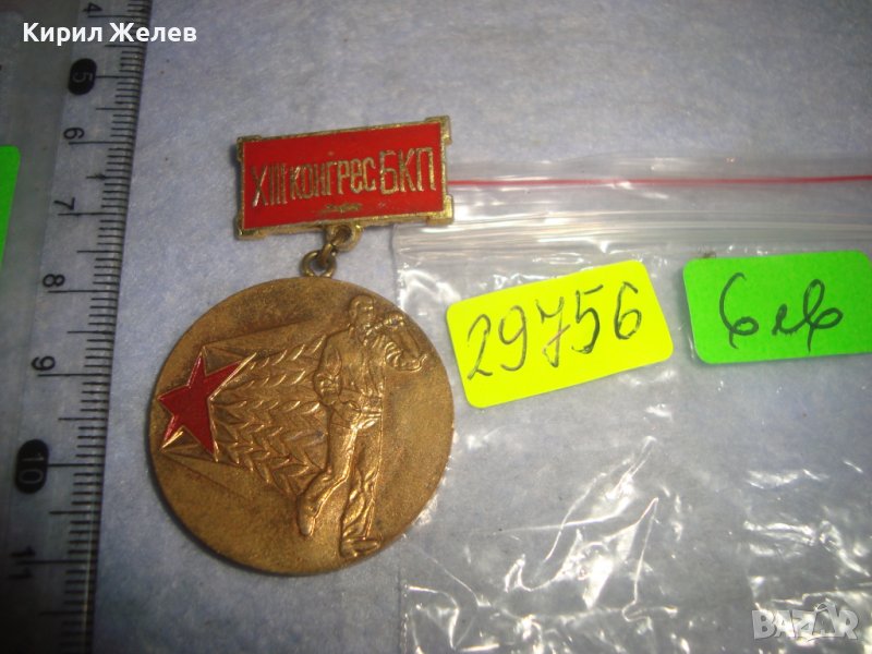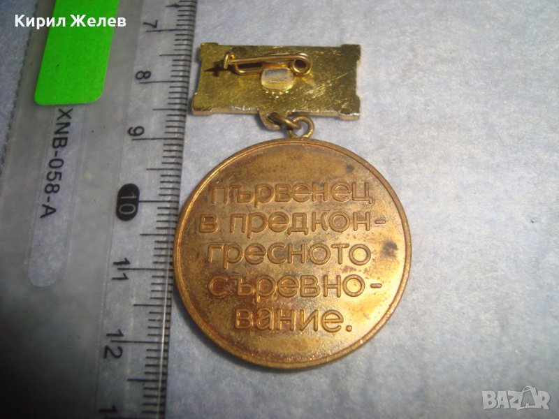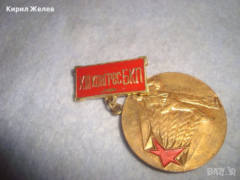 XIII КОНГРЕС на БКП ПЪРВЕНЕЦ в ПРЕДКОНГРЕСНОТО СЪРЕВНОВАНИЕ Соц НРБ ПОЗЛАТЕН МЕДАЛ ЗНАЧКА 29756