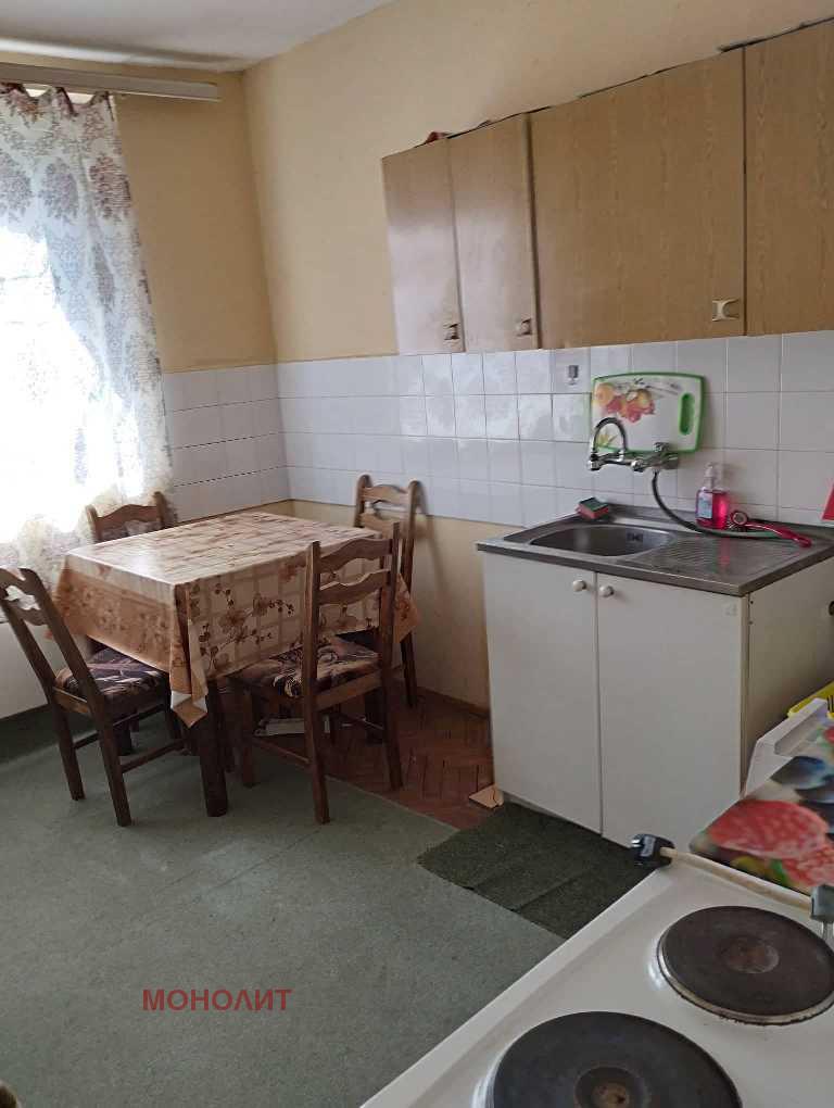 Двустаен тухлен апартамент, състоящ се от дневна, хол с преход към спалня, баня с тоалетна, килер. Дограма - дървена, под - паркет, мозайка. Към имота принадлежи избено помещение.
