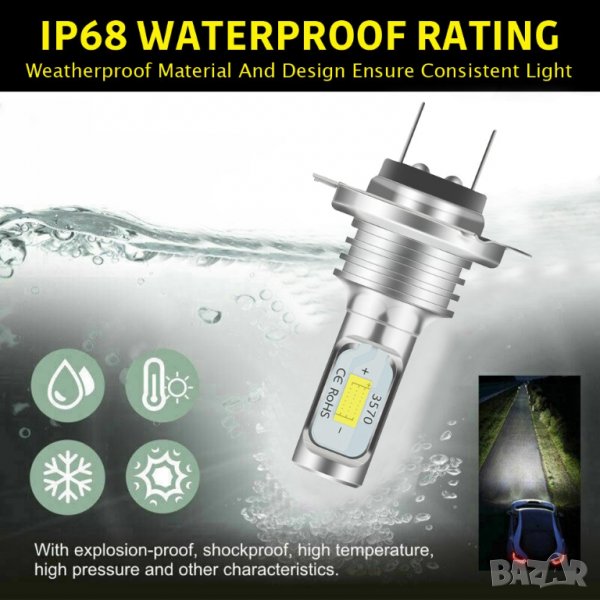 H7 Крушки, H7 Крушка, Без вентилатор, LED, за автомобил, за кола за фарове, ЛЕД, Бяла светлина