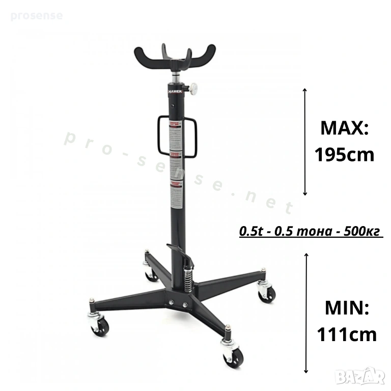 Крик за скоростни кутии 500кг / 0.5 тона 111см / 195см HAWEK е на марката HAWEK, предлагаща широка гама от професионални и любителски инструменти, включително безвъздушни машини за боядисване, комплекти екстрактори за болтове и пясъкоструйни кабини. Продуктите на HAWEK се отличават с високо качество, иновации и надеждност, като са подходящи за различни приложения в строителството и автомобилната индустрия