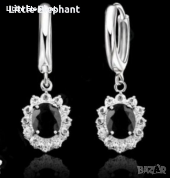 Висящи сребърни обеци с кристали,black/нови → Обява 37984760