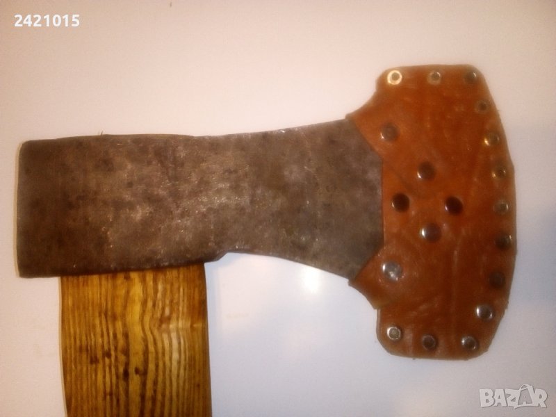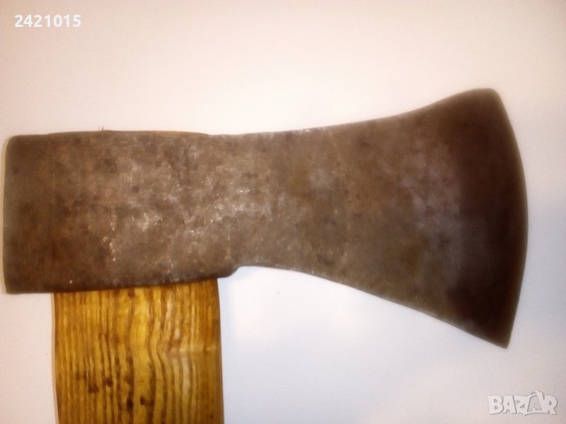 Стара немска кована брадва.Глава 1,6 кг,,21,5х11 см.Нова дръжка сух ясен-73 см,съосие.Общо тегло-2 кг,кожен калъф.Подходяща за сечене,цепене.