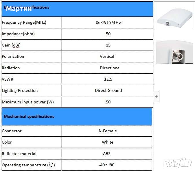 12dbi панелна antenna LoRa, 868MHz антена хелиум hellium → Обява 37985902