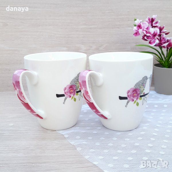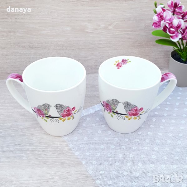 2953 Комплект керамични чаши за чай Влюбени врабчета, в кутия