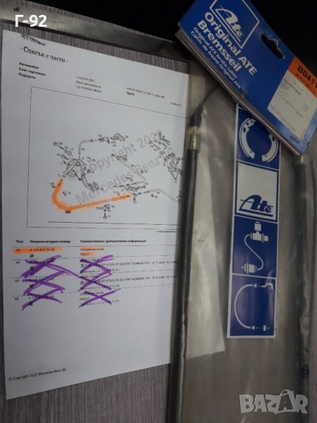 A1244202685=24.3727-0411.2**NEU**ATE**MERCEDES-BENZ**W124**ПРЕДНО**ЖИЛО ЗА РЪЧНАТА СПИРАЧКА**