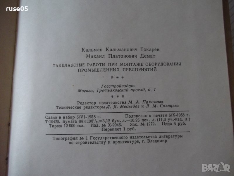 Книга"Такелажные работы при монтаже обор...-К.Токарев"-200ст → Обява 37994266