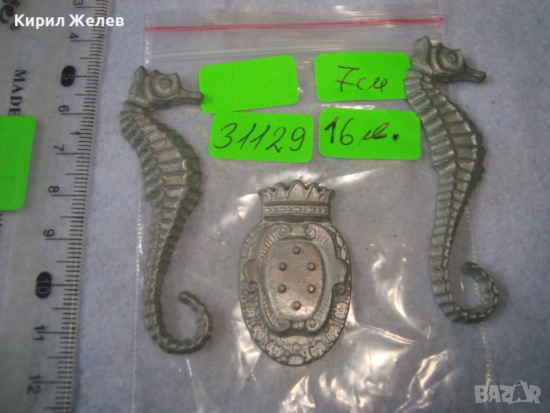 ЛОТ 2 ОЛОВНИ ФИГУРАЛНИ АПЛИКАЦИИ МОРСКО КОНЧЕ и ГЕРБ РЕДКИ за КОЛЕКЦИЯ ДЕКОРАЦИЯ 31129