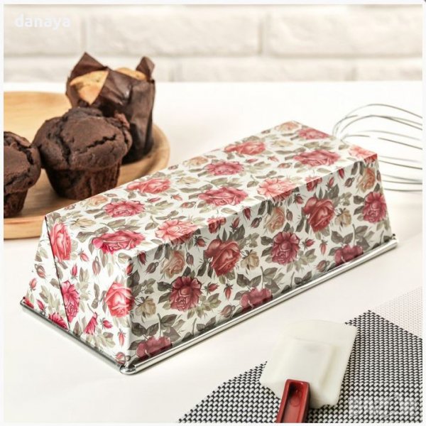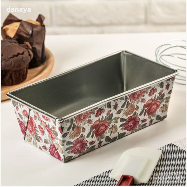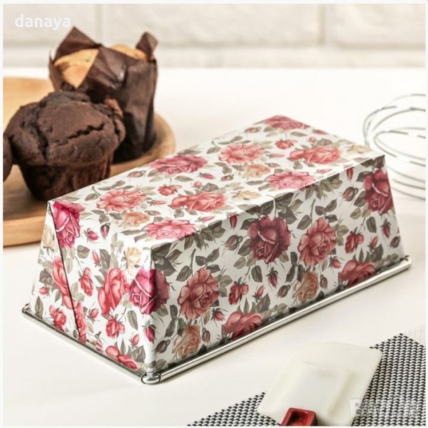 Форма за хляб и кекс. Метална форма за козунак, кекс, хляб, запеканки или други сладкиши и ястия в правоъгълна форма. Външната част е с красив принт на рози. Лесно почистване и удобна употреба. Изработени от метал. Тавичките се предлагат в два размера.