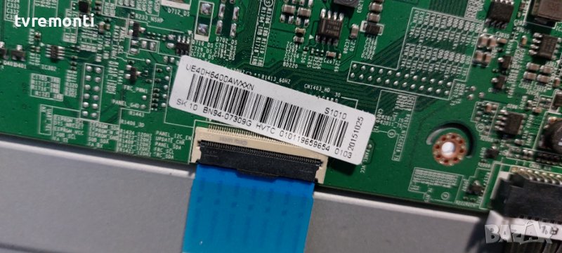 MAIN BOARD ,BN94-07309G, BN41-02156A for SAMSUNG UE40H6400AW борда е гарантирано работещ Демонтиран от телевизор SAMSUNG модел UE40H6400AW със счупен дисплей CY-GH040CSLV9H тествана от нашия техник