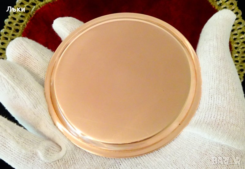 качествена мед,ръчно декорирана с литография на герба на град Майнц по река Рейн.Диаметър 9 см.,височина 0.5 см.,тегло 40 гр.