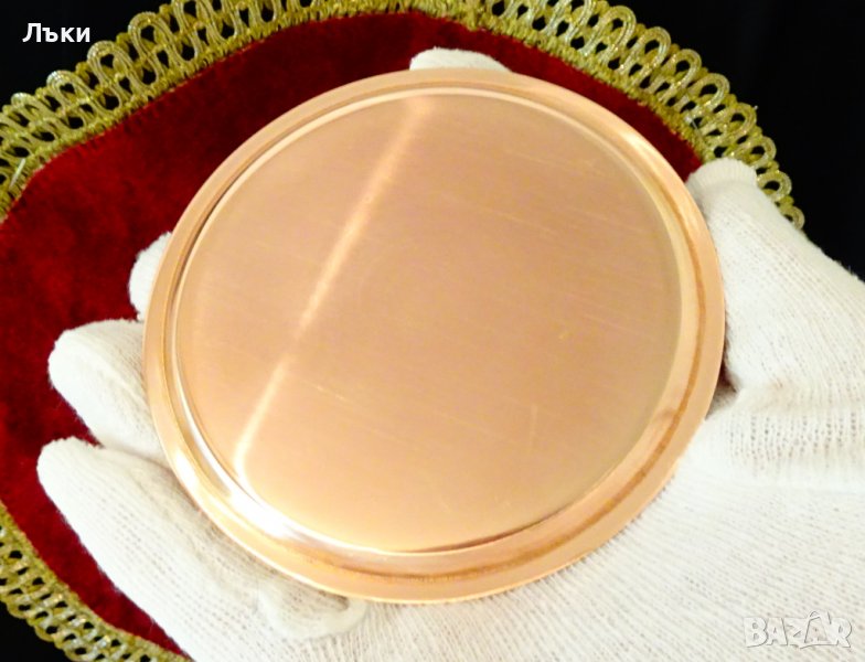 качествена мед,ръчно декорирана с литография изглед към град Майнц на река Рейн.Диаметър 9 см.,височина 0.5 см.,тегло 40 гр.