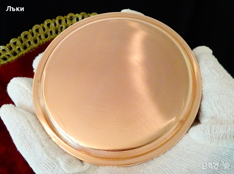 качествена мед,ръчно декорирана с литография на църква в град Майнц на река Рейн.Диаметър 9 см.,височина 0.5 см.,тегло 40 гр.