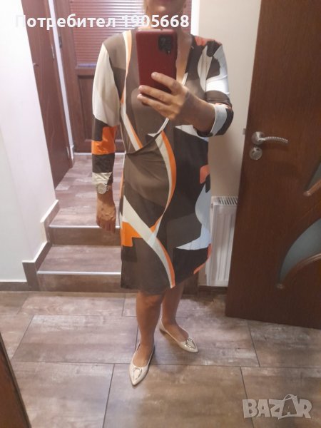 и елегантна дамска рокля подходяща да сезона. Немачкаема материя в красиво цветово съчетание .