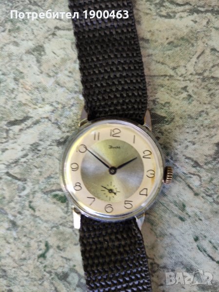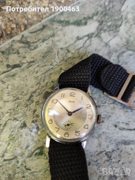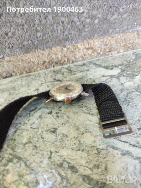 Механичен часовник ръчно навиване произведен през края на 60те години в СССР.Работи добре.Доаметър 34мм без коронката.Касата е поистъркана на места.Нова перлонова каишка от времето на часовника.