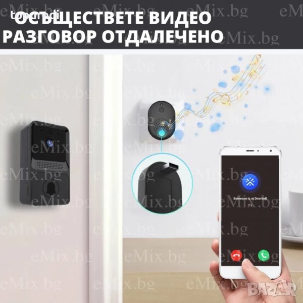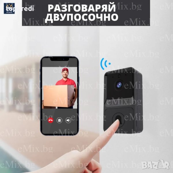 Благодарение на безжичната Wi-Fi технология, интелигентният звънец позволява гледане от разстояние и разговори с хората пред входната врата.