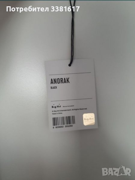 Аноракът е официален продукт на BTS, закупен е от eBay, Корея. В отлично състояние е. Размерът е onesize, но отговаря на L. Включва и оригиналната карта/сертификат за доказателство, че е оригинално. Аноракът е от мърч колекцията Map Of The Soul Tour. Продавам го, защото вече не е стила ми и се надявам някое друго арми да го носи с повече удоволствие. Изпращам с Еконт, опция преглед и тест, връщането е за сметка на купувача.