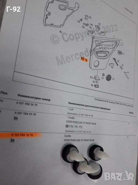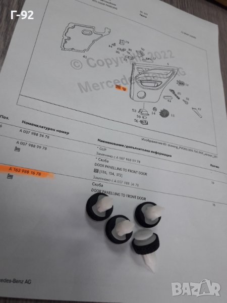 A1639881678**NEU**MERCEDES-BENZ**ML**W163**ЩИПКИ ЗА ТАПИЦЕРИЯ**Щипка за корите на вратите**