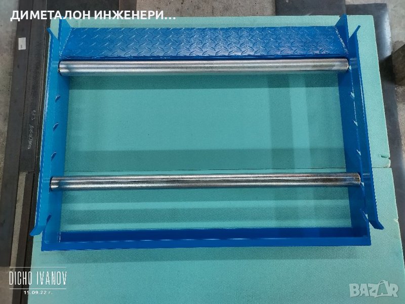 Стойка за развиване на кабелни макари до ф 1200 х 950 размери 1000-800-h200 тегло 41 кг.дължина на ролките 1000 мм. ф 51, Изработване и на по-малки размери според нуждите с ролки 600 и 400 мм..