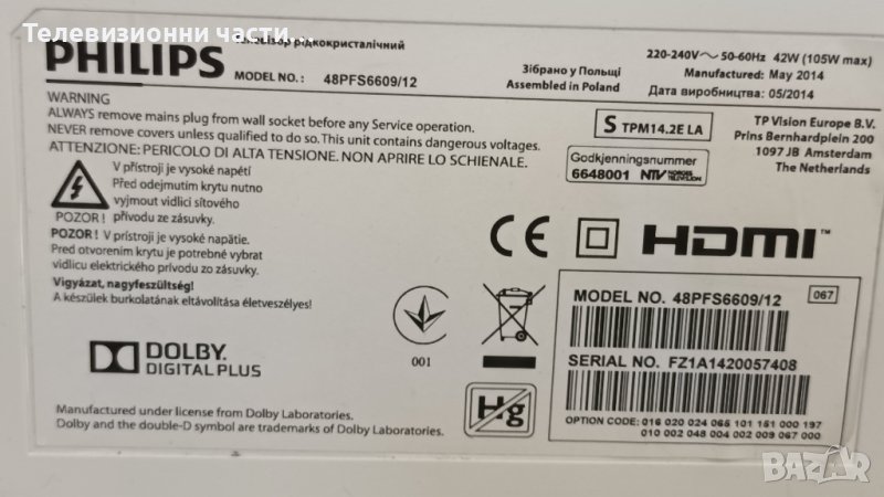 Philips 48PFS6609/12 с дефектен екран и T-Con Board
