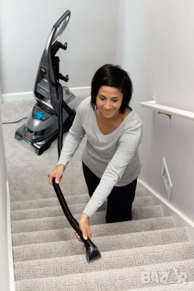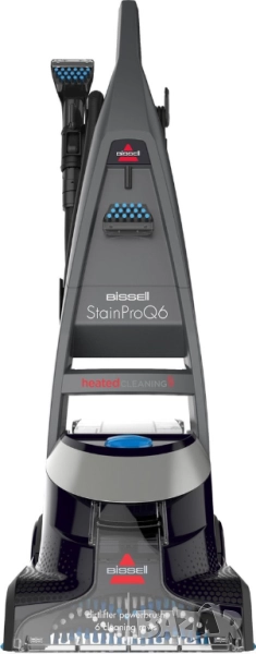 BISSELL 20093 StainPro Q6 е мощен почистващ уред, създаден за дълбоко пране на килими и мокети. Благодарение на осем реда въртящи се четки PowerBrush и технология HeatWave, уредът премахва петна, мръсотия и неприятни миризми в дълбочина. Подходящ е за домакинства с домашни любимци или малки деца.
