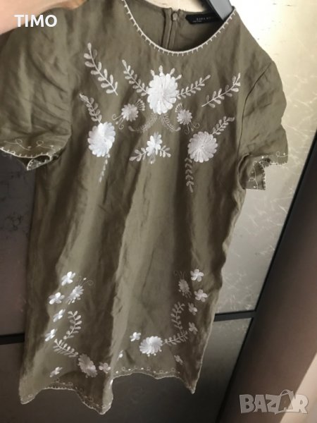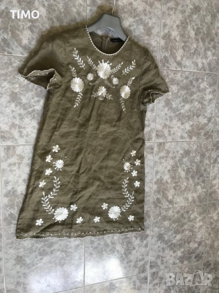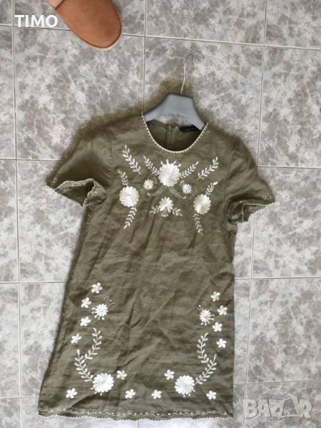 Рокля на Зара с бродерия .Лен и памук , зелена с бяла бродерия и е много елегантна и красива